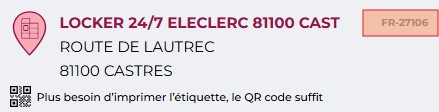 Pour informer I3DS du point de livraison Mondial Relay, cliquez ici et indiquez-moi via le formulaire de contact le numéro de Point Relais / Locker FR-XXXXX qui se situe en haut à droite de celui que vous aurez sélectionné, voir image suivante. Sinon le point de livraison le plus proche de votre domicile sera sélectionné.